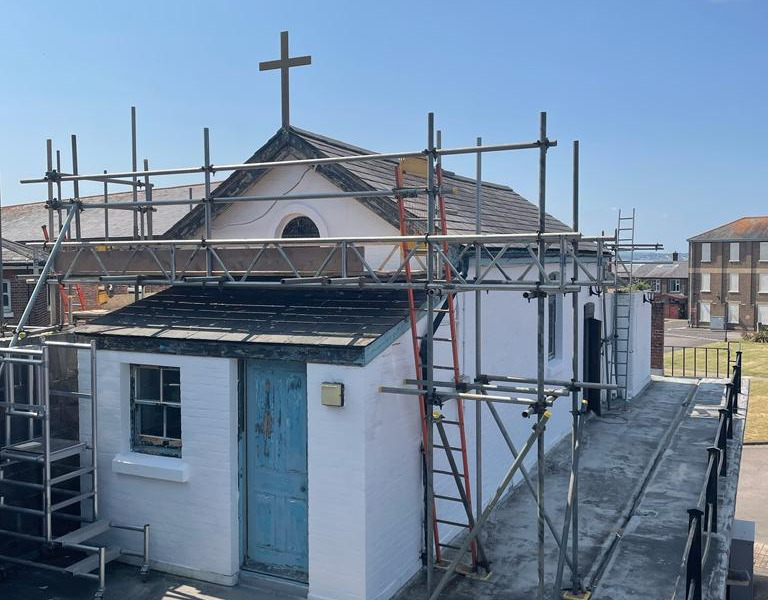 Graham Platts, (Facilities and Security Manager at Fort Blockhouse) managed to get funding to re-furbish the exterior of the Chapel of Remembrance in December 2023. He personally oversaw the project and the contractors have made a first class job of it.