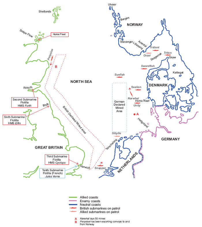 Map 5 The Calm before the Storm Submarine dispositions to cover British mine laying on the West Coast of Central Norway 4 April 1940
