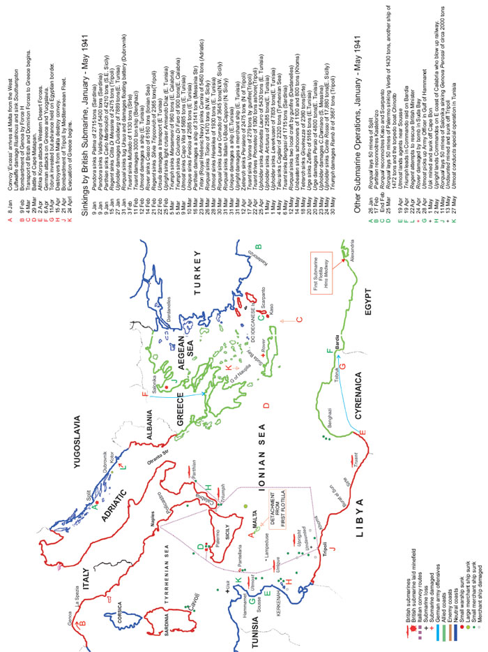 MAP 17 The opening of the attack on General Rommels supply line Disposition of Submarines is shown as it was on 9th March 1941