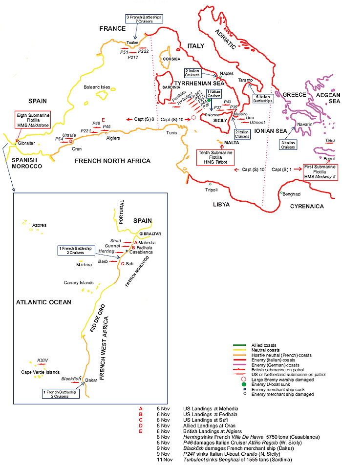 Map 35 Submarines during the North African Landings 8th - 11th November 1942
