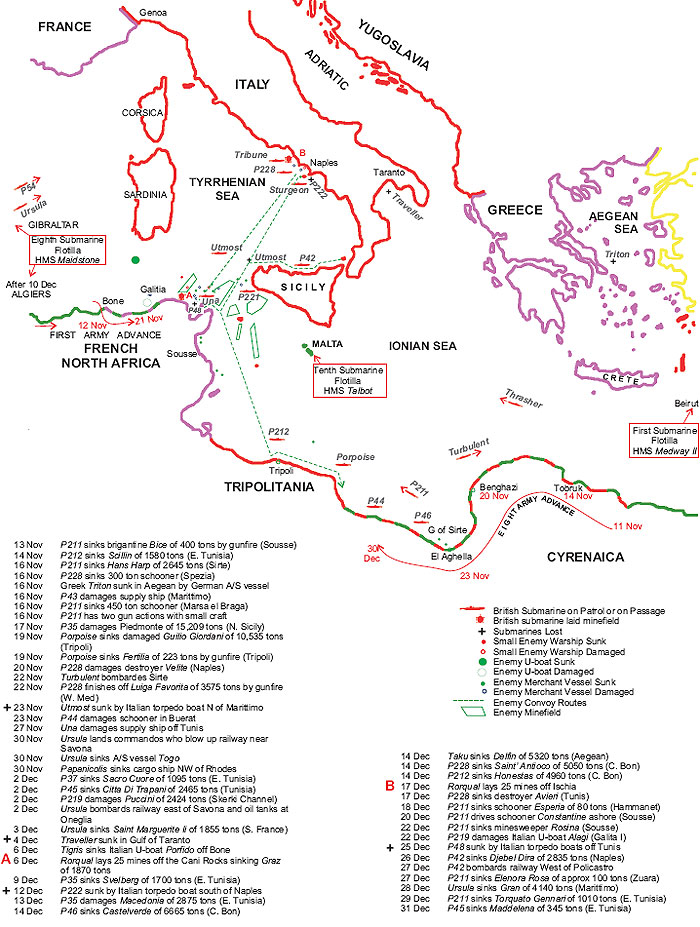 Map 36 Operations in the Mediterranean after the landings in North Africa. November - December 1942 Position of Submarines are for 20th November approximately
