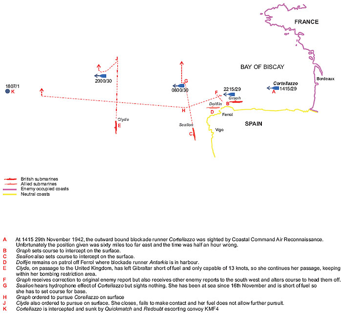 Map 37 The pursuit of the Blockade Runner Cortellazzo. 29th November - 1st December 1942