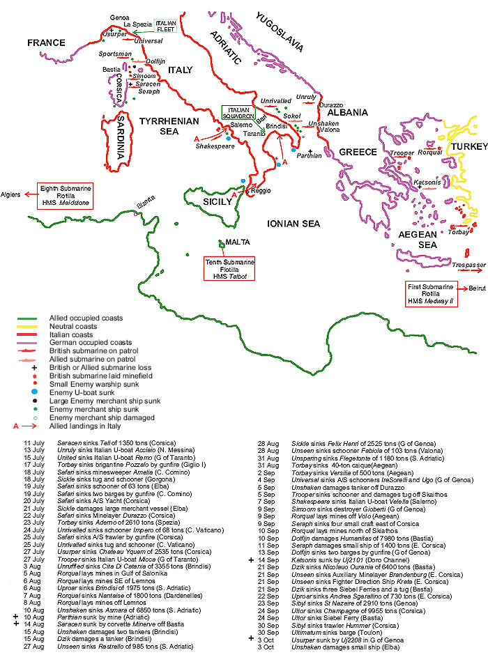 Map 44 The Invasion of Italy Positions of Submarines are for 9th September 1943, the date of the landing at Salerno