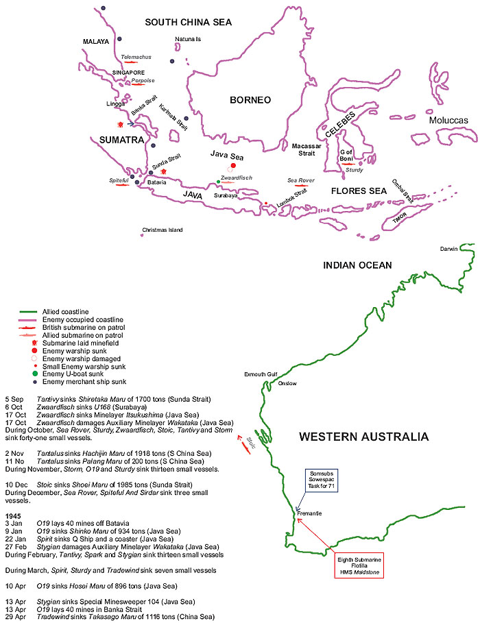Map 55 Submarine operations in the South West Pacific August 1944 - April 1945 Submarine patrol positions are for early October 1944