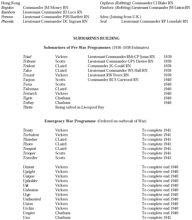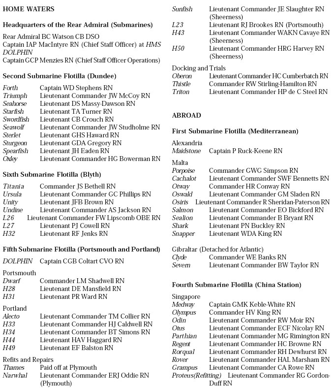 Organisation of Submarines of the Royal Navy at the Outbreak of War (3rd September 1939)