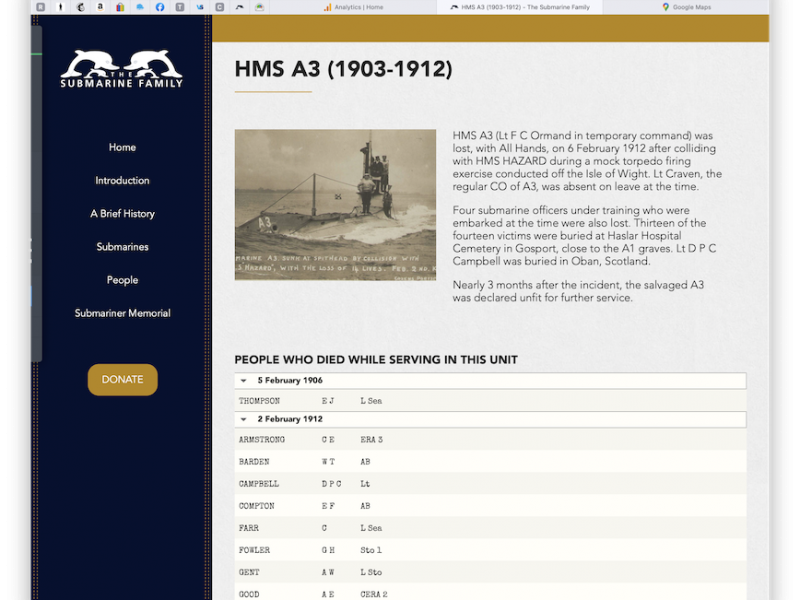 The Submarine Book of Remembrance is the gift of the Friends to The Submariner Memorial Appeal. The book begins with an introduction describing the long and rather tortuous route to its creation and a brief history of the submarine service written by historian and author Iain Ballantyne. The body of the book contains the listings of people lost in service and boats lost. Where we have them there are photos and short descriptions of the circumstances of the loss. Readers may then add their own comments, tributes and photos of those they have known.