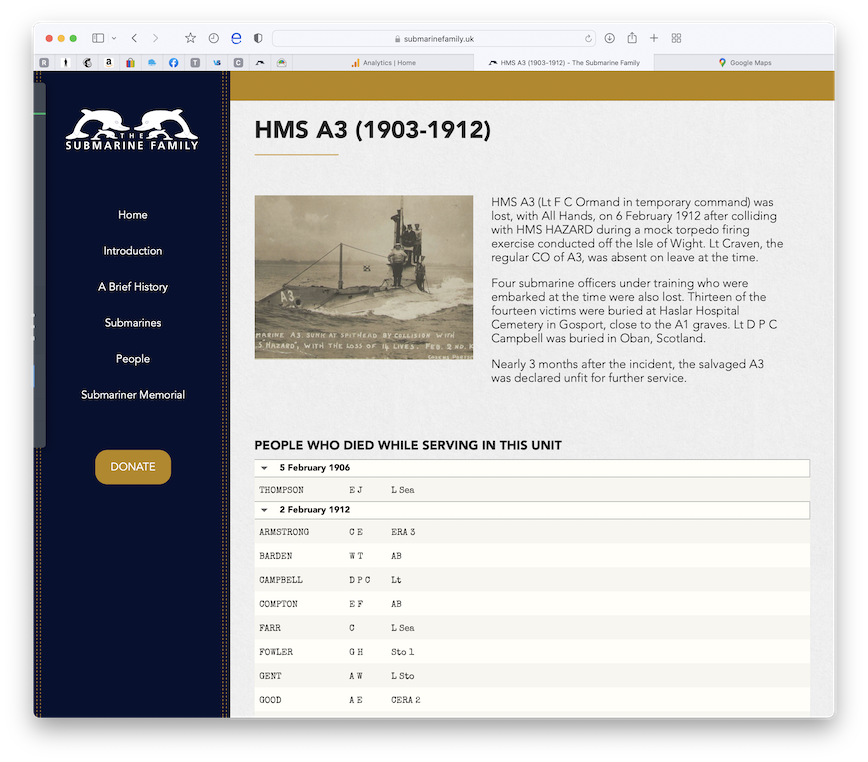 The Submarine Book of Remembrance is the gift of the Friends to The Submariner Memorial Appeal. The book begins with an introduction describing the long and rather tortuous route to its creation and a brief history of the submarine service written by historian and author Iain Ballantyne. The body of the book contains the listings of people lost in service and boats lost. Where we have them there are photos and short descriptions of the circumstances of the loss. Readers may then add their own comments, tributes and photos of those they have known.
